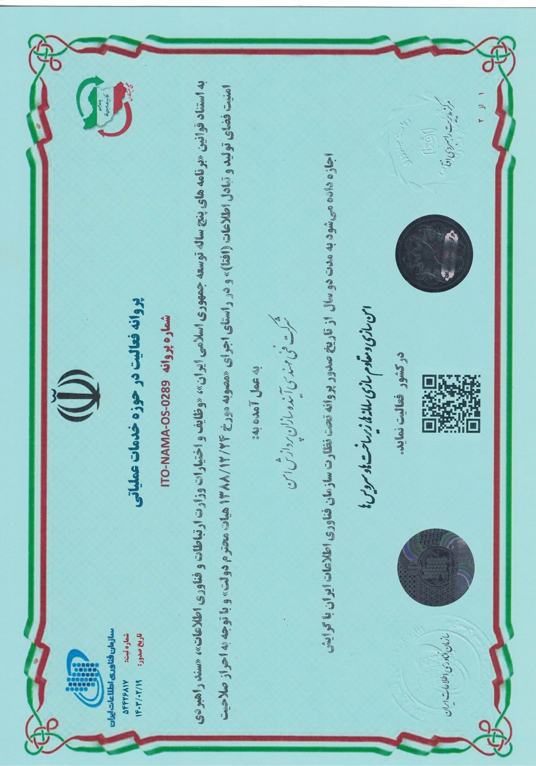 پروانه فعالیت در حوزه امن‌سازی و مقاوم‌سازی سامانه‌ها، زیرساخت‌ها و سرویس‌ها